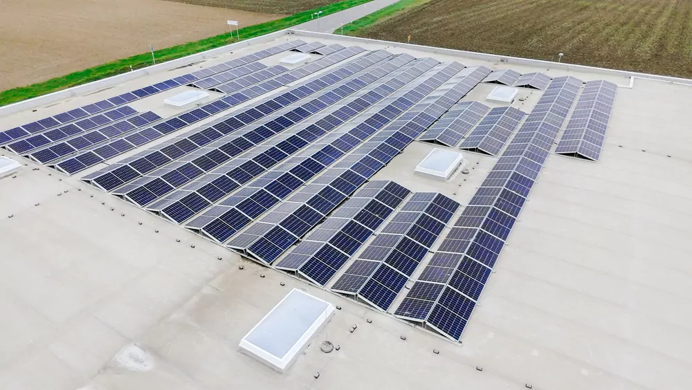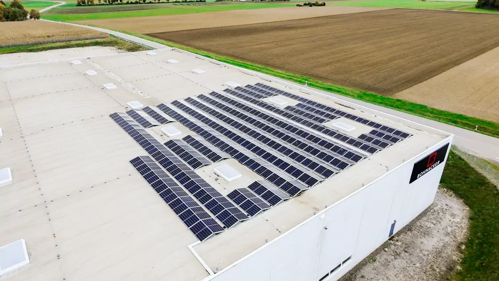 Auf der Lagerhalle der Firma Bohnacker Ladeneinrichtungen GmbH wurde eine PV-Anlage mit PKW-Ladestationen installiert. Der Strom wird somit direkt vor Ort verbraucht und die PV-Anlage deckt den alltäglichen Strombedarf. Die DC-seitige Installation, die die Montage der Unterkonstruktion, die Installation der Module, Verkabelung, den Potentialausgleich sowie die Wechselrichtermontage umfasst, wurde in ca. 8 Tagen abgeschlossen.